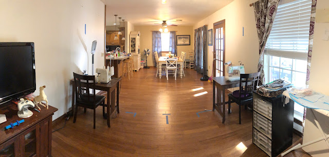 But... it was always awkward to have whatever creative mess I had laid out visible from the dining room. Forget sewing to surprise a family member around a birthday or Christmas. Plus as our friends became parents around us, more frequent were the times I had to "hide all the sharp things" (and my machines) so we could host someone.